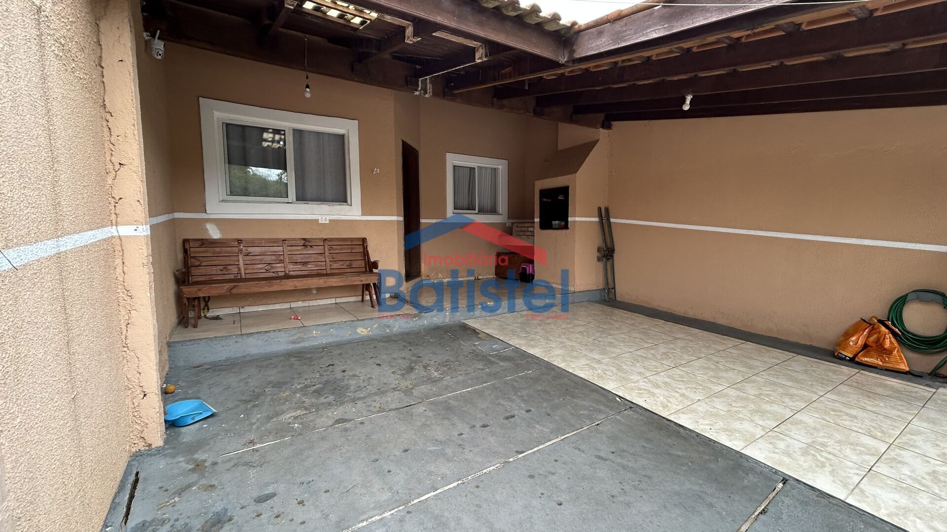 Casa de alvenaria com 75m² de área total sendo 60m² de área averbada, contém 02 dormitórios, sala de estar/jantar, garagem para 01 veículo, churrasqueira.